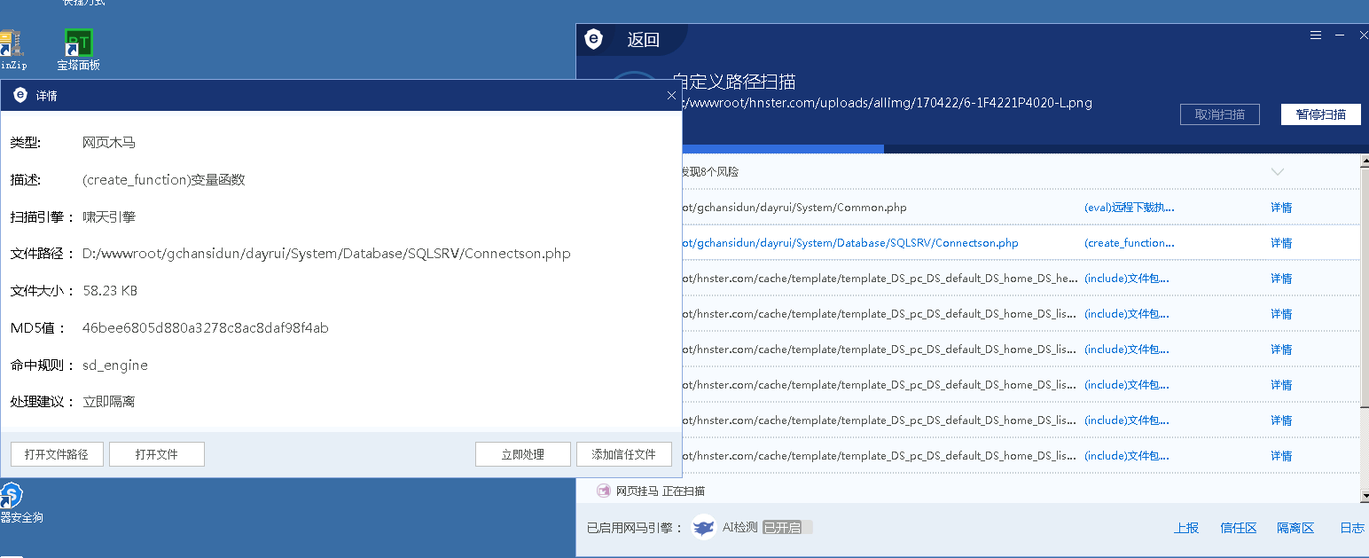 想问下就是网站被病毒攻击,然后用D盾查找出来的病毒文件如果隔离,会导致网站打不开,不隔离的话病毒会一直攻击网站,导致系统CPU过高,系统加载缓慢,网站也加载缓慢。这种情况怎么处理,请教下大佬。