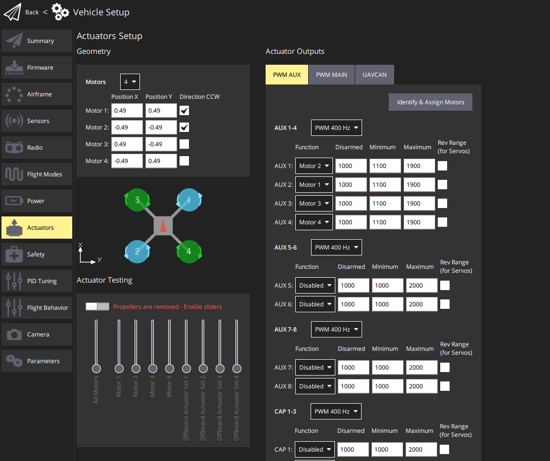 2个火凤凰有刷电调,2个有刷电机,固件ROVER4.5.0,校准好接好线之后电调一直慢闪红灯,操作遥控MP地面站上servo output有反应,但是电机不转,求大佬解答。