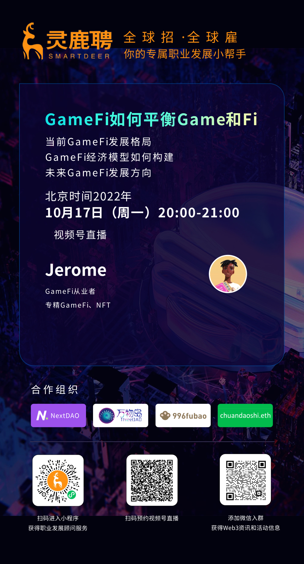 在元宇宙概念火热的当下 一种新的NFT游戏进入大众视野——GameFi 很多人都认为GameFi将引领下一波的浪潮 10月14日,【大咖带你入局】探寻GameFi的前身和未来 扫描视频号二维码预约直播