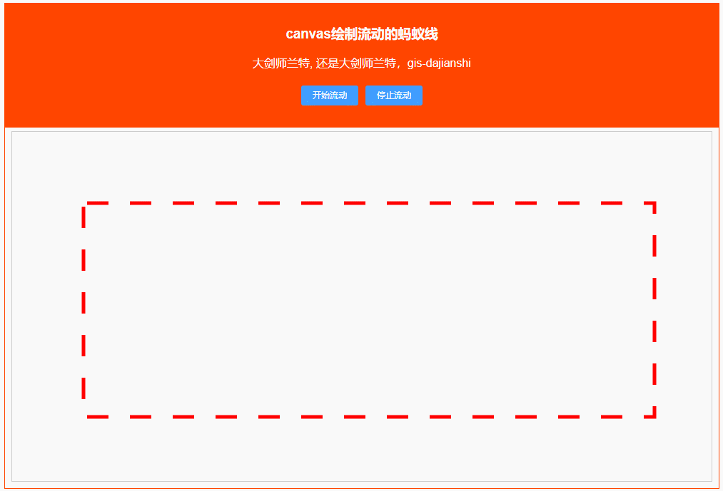 如题:canvas上如何绘制流动的虚线? 这里的蚂蚁线用到了设置虚线的方法setLineDash(),同时更为重要的是设定lineDashOffset。 示例:https://dajianshi.blog.csdn.net/article/detai