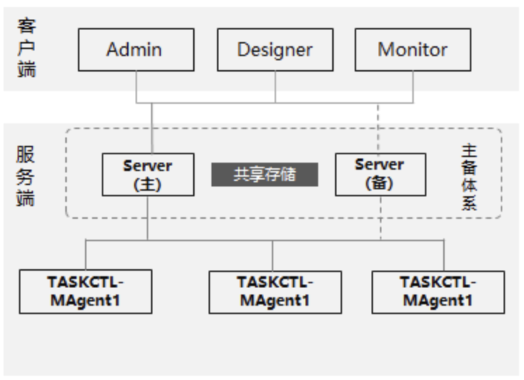 TASKCTL调度服务高可靠原理 TASKCTL产品的高可靠,是建立在共享存储技术基础之上。其原理非常简单。 TASKCTL本身无数据库,无任何第三方中间件,整个产品信息均在一个文件目录下。因此,通过共享存储,连接两个不同应用环境,即可达到信息共享的