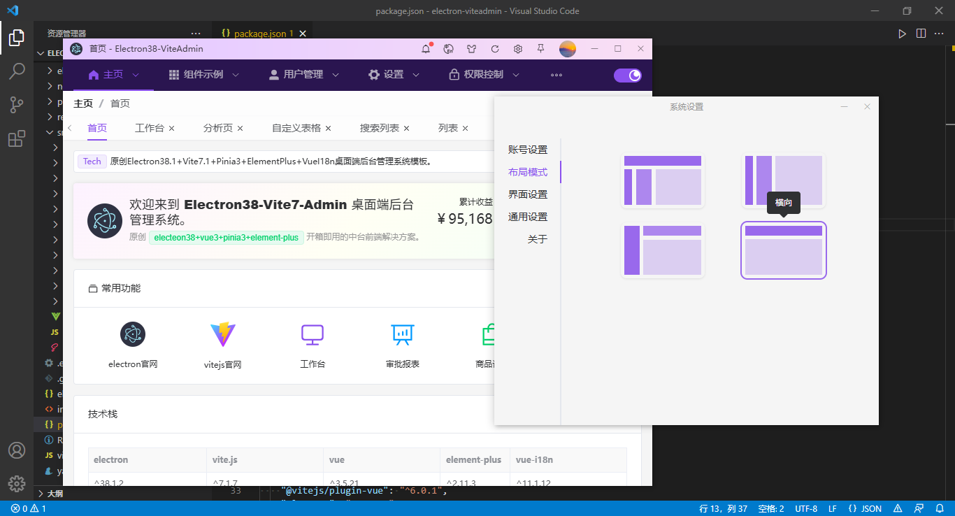 最新原创electron38.x+vue3+element-plus电脑端后台admin管理模板