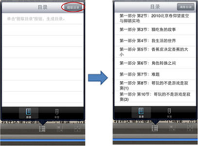 Apabi Reader还可以对TXT进行智能目录提取,用户只需点击“提取目录”按钮,一般可以在几秒钟内提取TXT文档的目录信息,并可以在不需要时清除该目录。