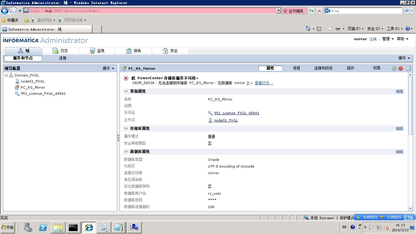 2014-03-13 14:45:45 : 错误 : (14540 | 11140) : (RS | PC_RS_Mirror) : node01_FXGL : OBJM_54538 : 无法连接到存储库 PC_RS_Mirror - 在数据库 mirror 上。