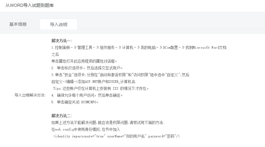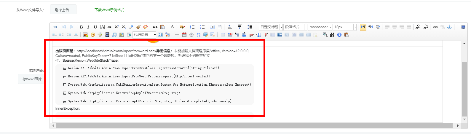 出错页面是:http://localhost/Admin/exam/inportfromword.ashx