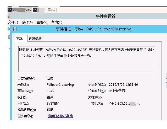 上个星期在a机房搭了一套alwayson,星期四搭好的,从上个星期日开始在250那台机上的windows eventlog就发现上面ip冲突的错误