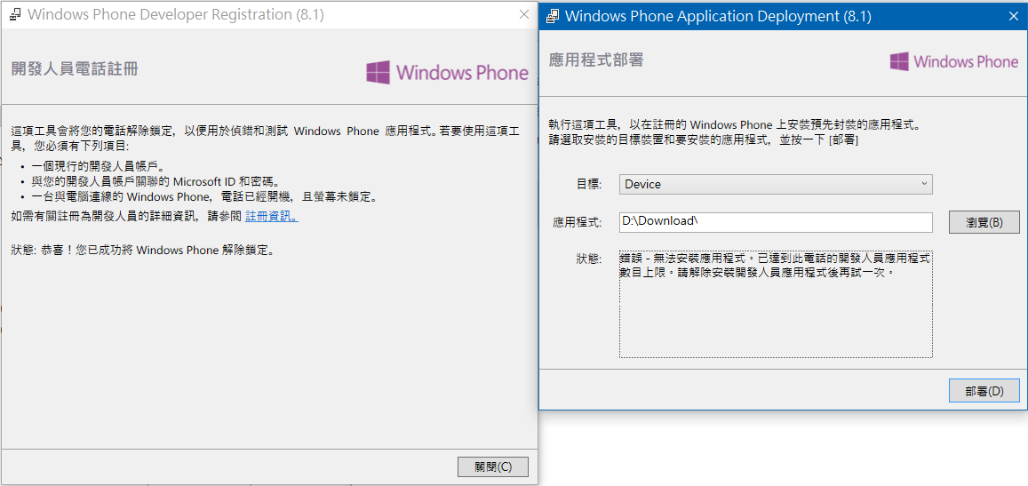 求问关于一个在windows phone application deployment 8.1 安装应用程序时出现的问题
