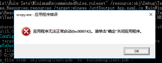 用msbuild 编译,执行到xcopy时出现如图所示错误: