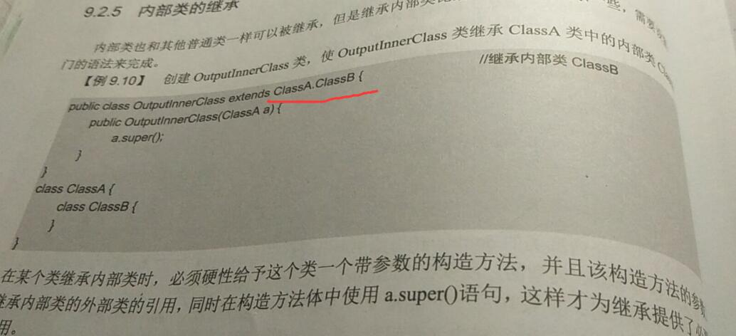a.super(s); // 首先调用父类(ClassA 的内部类)的构造方法