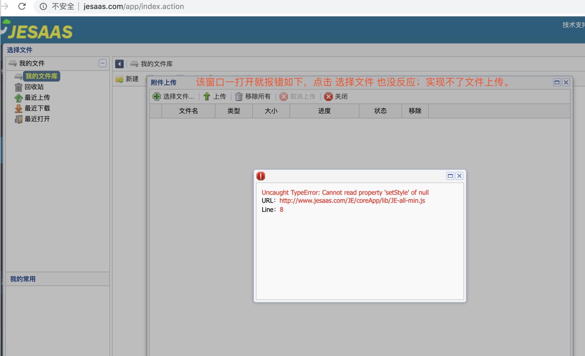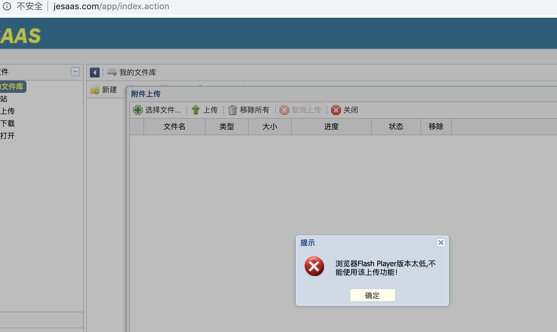 开发四年只会写业务代码,分布式高并发都不会还做程序员?->>> 软件运行环境:ios10.14.5 chrome 浏览器:76.0.3800.0(正式版本)dev (64 位)、safari 12.1.1 (14607.2.6.1.1) flash player已经从官网下载安装了最新版本。 点击上传,打开上传窗口即报错如下: