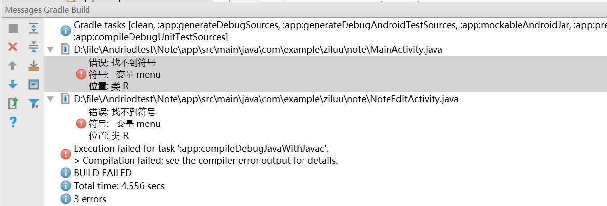 代码错误:找不到符号 符号:变量menu 位置:类R