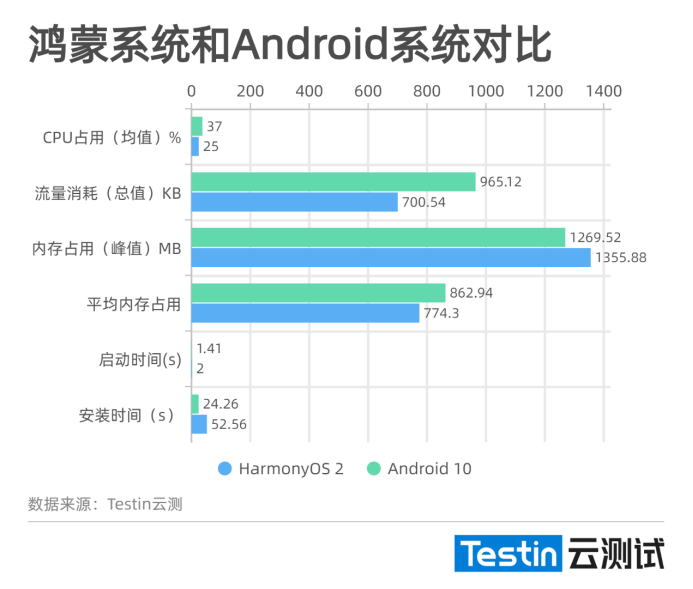 在相同型号手机(P40 PRO)上分别安装Android 10和HarmonyOS 2.0系统,对随机选取的多个App进行同环境、同脚本下的测试,最终Android 10和HarmonyOS 2.0系统表现非常接近。需要说明的是本次为个体测试,不代表全面数据,而通过对多次对比的枕头数据分析结果和该结论类似,但HarmonyOS 2.0系统在降低资源消耗方面确实略有优势。