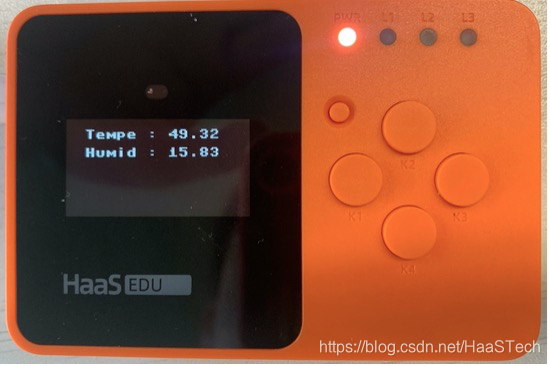 训练营中第一个大的实践案例就是将HaaS EDU K1的温湿度数据上云。具体见下图,HaaS EDU K1板上自带了一款温湿度的传感器,案例中会先将温湿度的数据采集了以后显示在HaaS EDU K1的OLED显示屏上,然后在将这些数据上传到物联网平台,这样就可以通过后台查看的温湿度的数据。