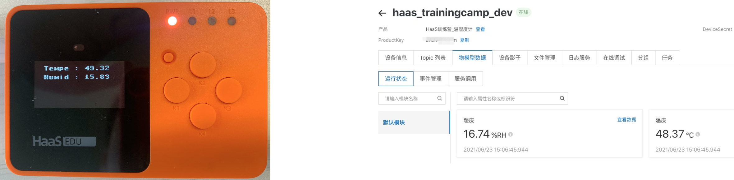 至此温湿度上云的案例就打造完成了。是不是非常的易上手。相信参加HaaS云端一体物联网开发训练营的开发者就能看到HaaS和传统开发的不同之处。