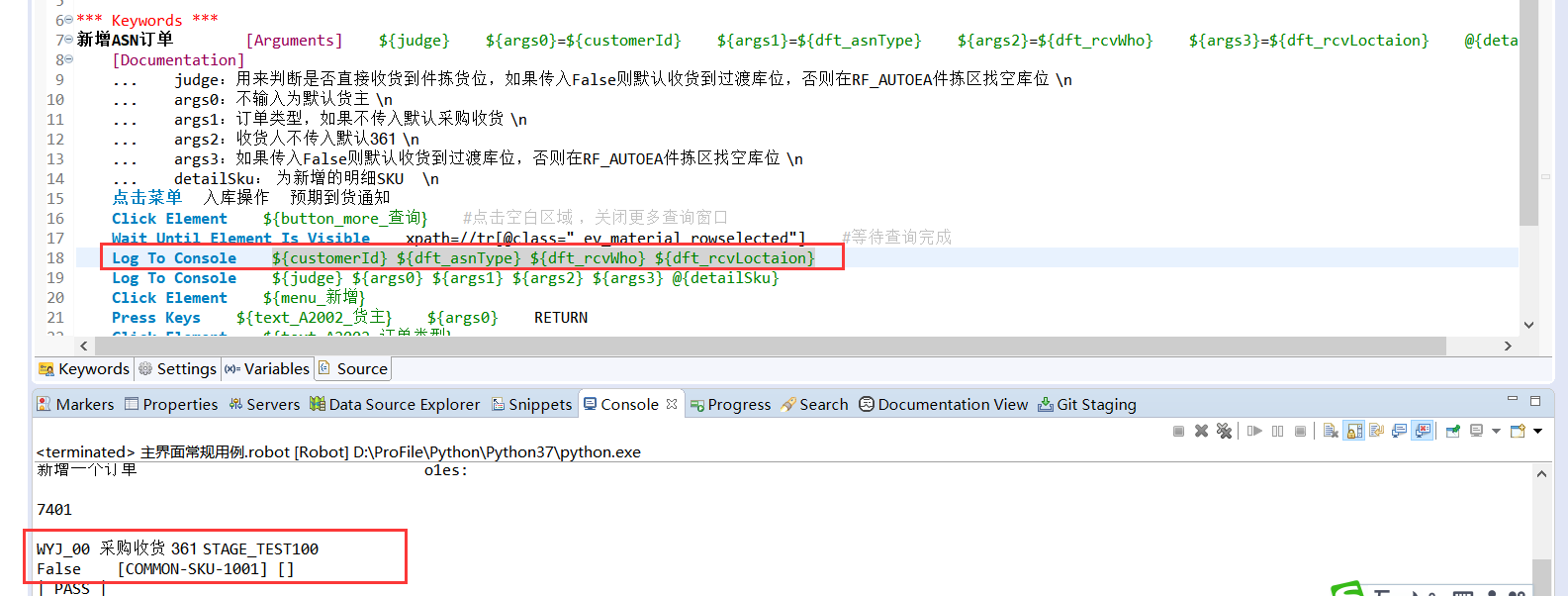 若使用 新增ASN订单 False \ \ \ \ [COMMON-SKU-1001] 此时后面的参数都无法正常获取到默认的值