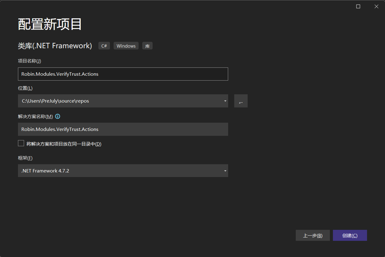 1、新建类库.Net Framework,框架版本4.7.2