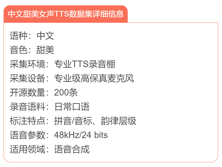 中文甜美女声TTS数据集