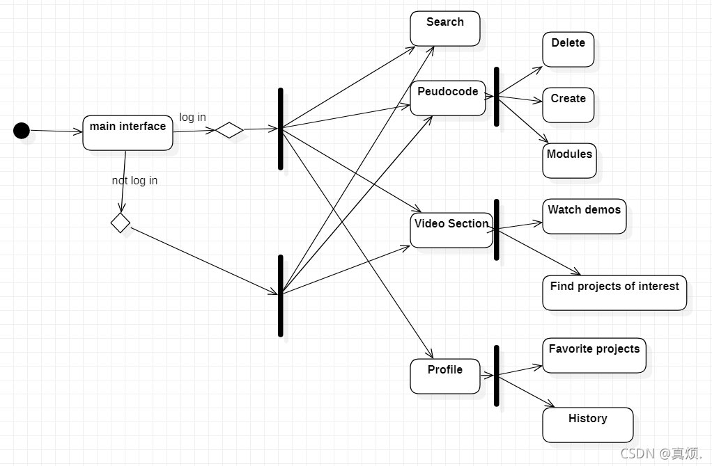 Another innovation point is the pseudocode function. This function is made to help the communication between team leader and members under some special cases. For example, when the computer is not around, our mini app will help the users to record their idea and show the pseudocode to their teammates.