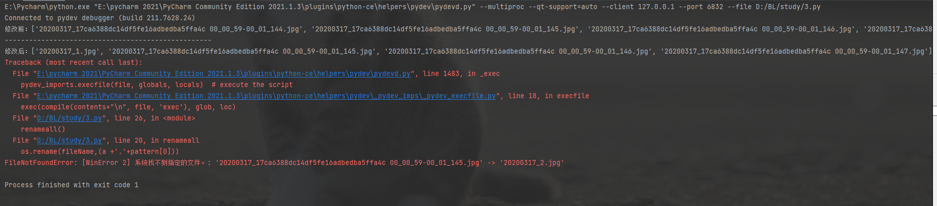 代码第一次循环是能运行成功的,第二次循环到os.rename就报错了。
