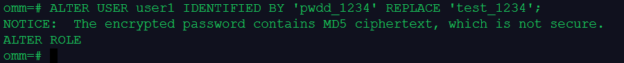 ALTER USER user1 IDENTIFIED BY 'pwdd_1234' REPLACE 'test_1234';