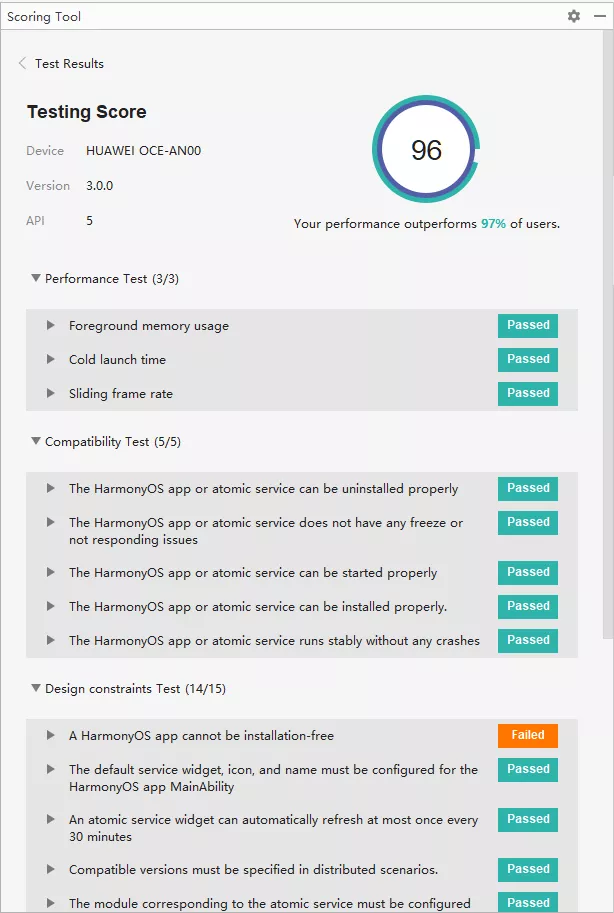 HarmonyOS分布式应用评分工具定位于帮助开发者本地快速测试,快速闭环问题,如图4所示。