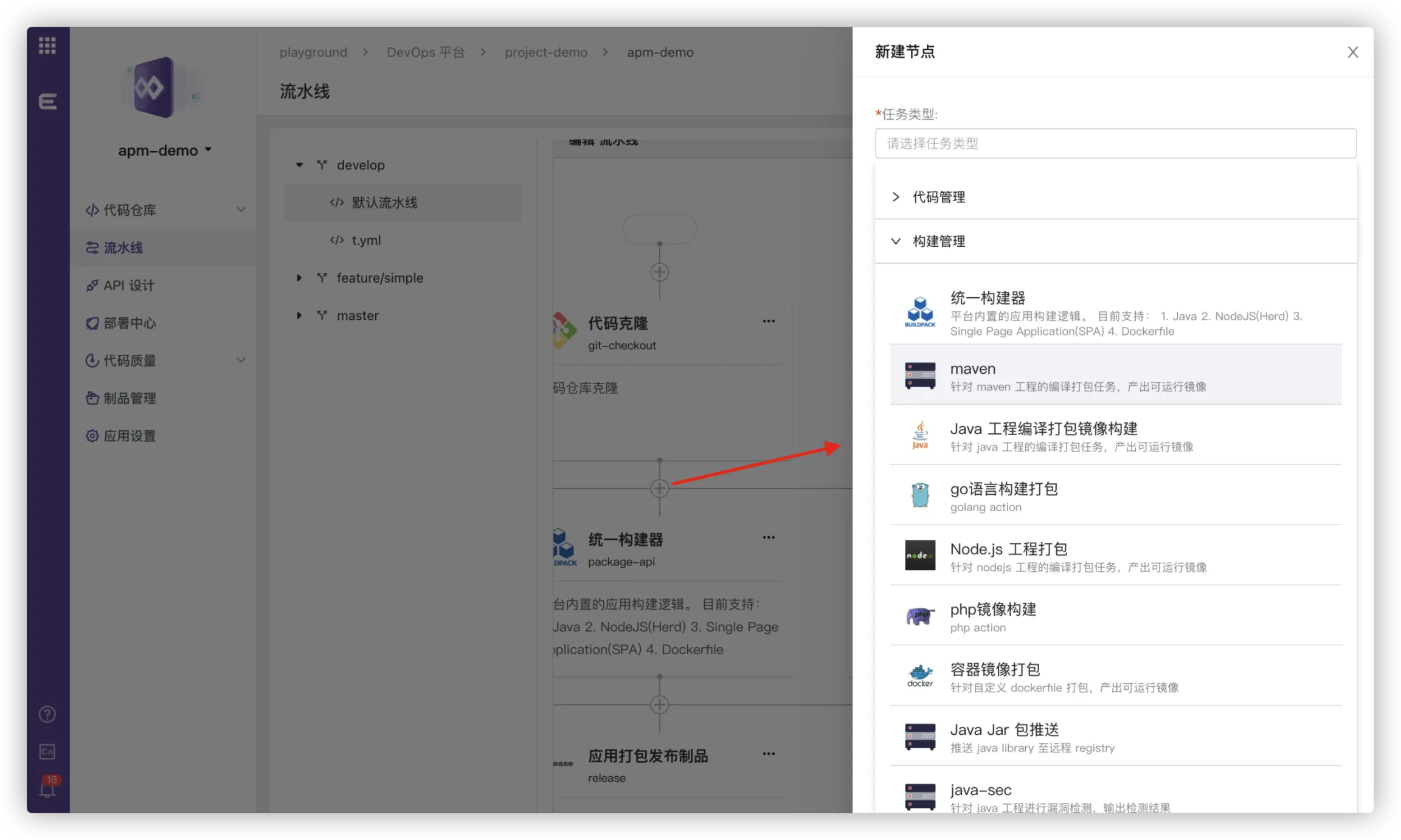 通常情况下,一个软件研发项目的实现包含以下五个阶段,对应 Erda 功能罗列如下: