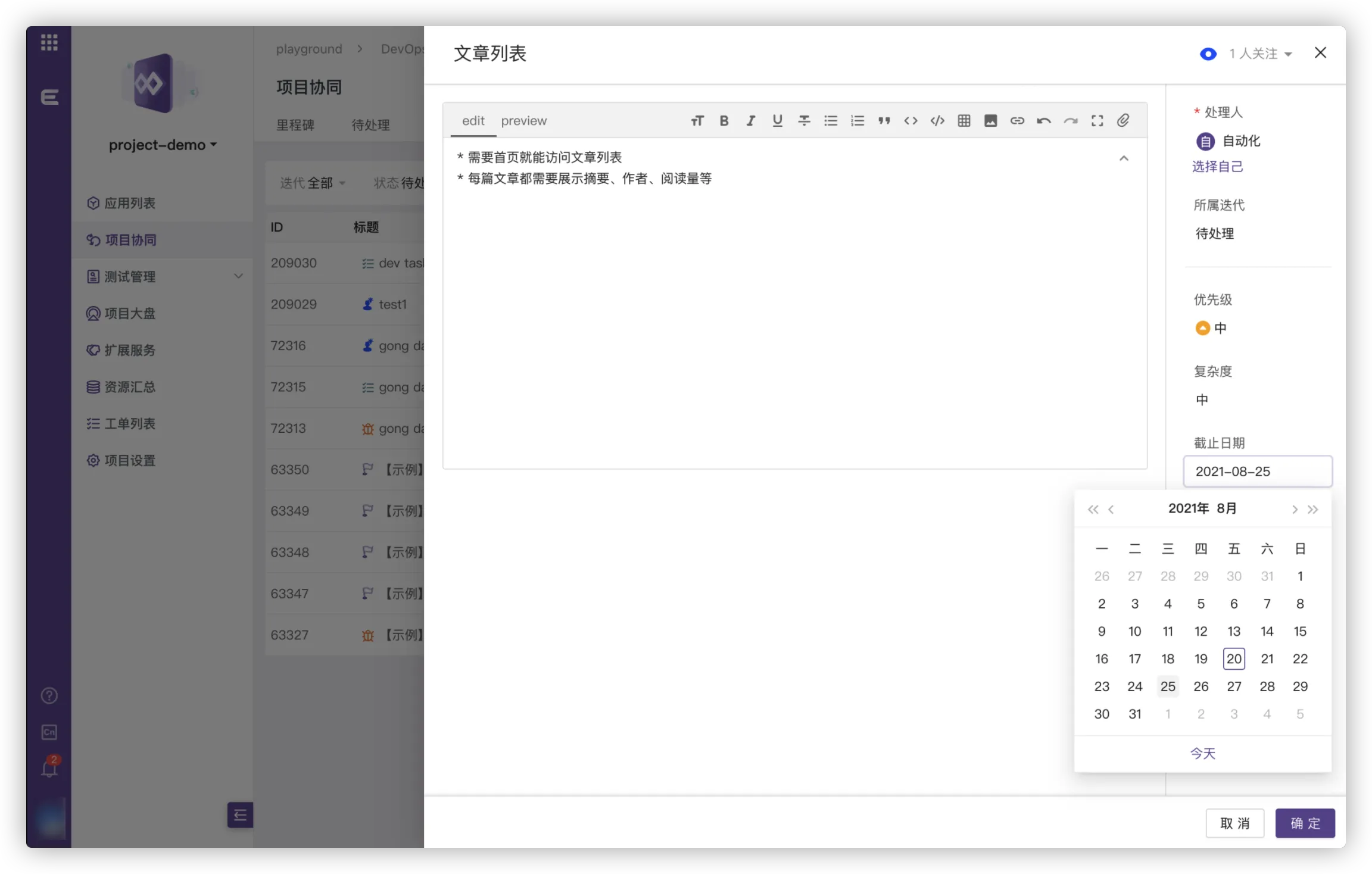 开发人员可基于不同视角查看各自的任务,也可评论进度或提出异议。
