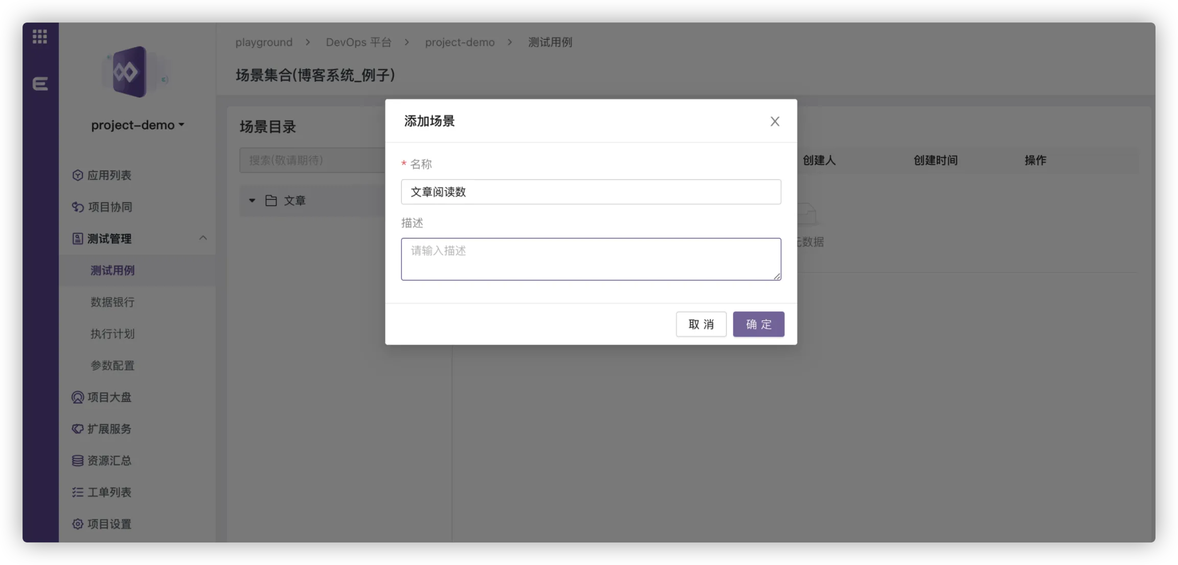 进入 DevOps 平台 > 测试管理 > 测试用例 > 自动化测试,创建场景目录 文章。