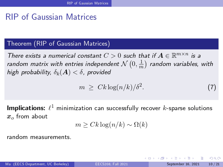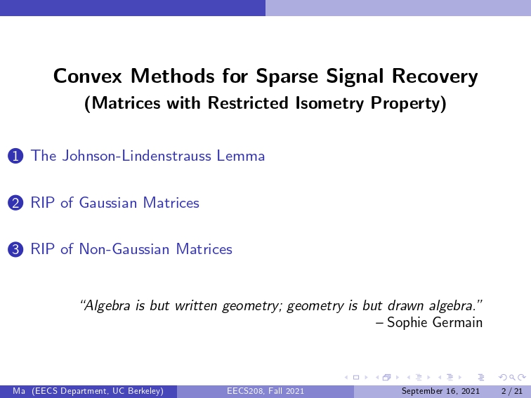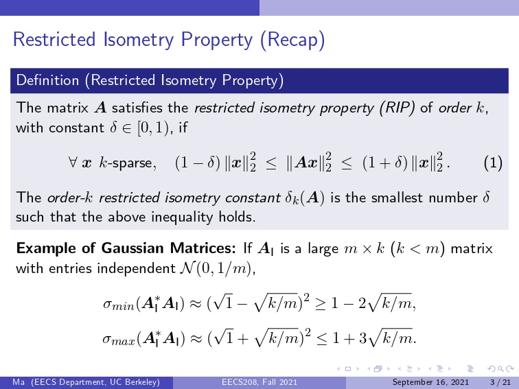 【Lecture 06】Convex Sparse Recovery: Matrices with Restricted Isometry Property.