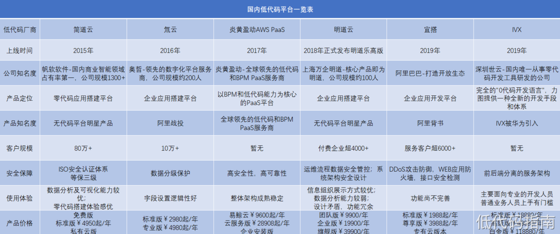 国内低代码平台一览表