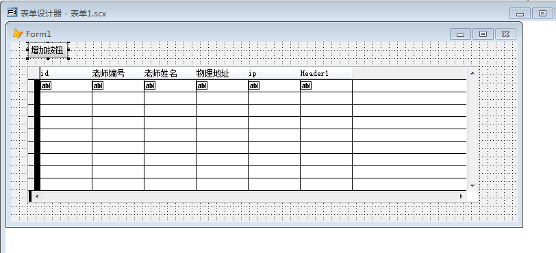 里面就一个GRID,一个按钮,数据环境中加载教师表。