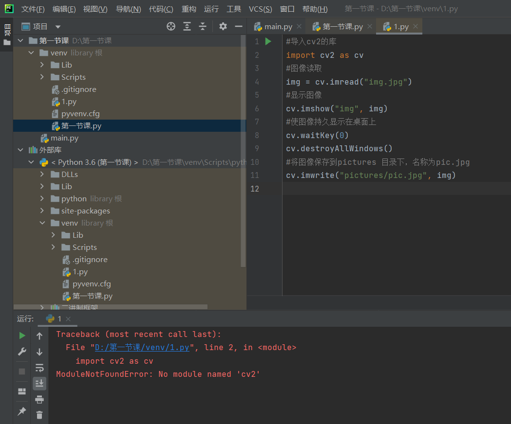 有大神能帮忙解决一下疑惑嘛呜呜!! 为啥会出现导入不进去cv2!!