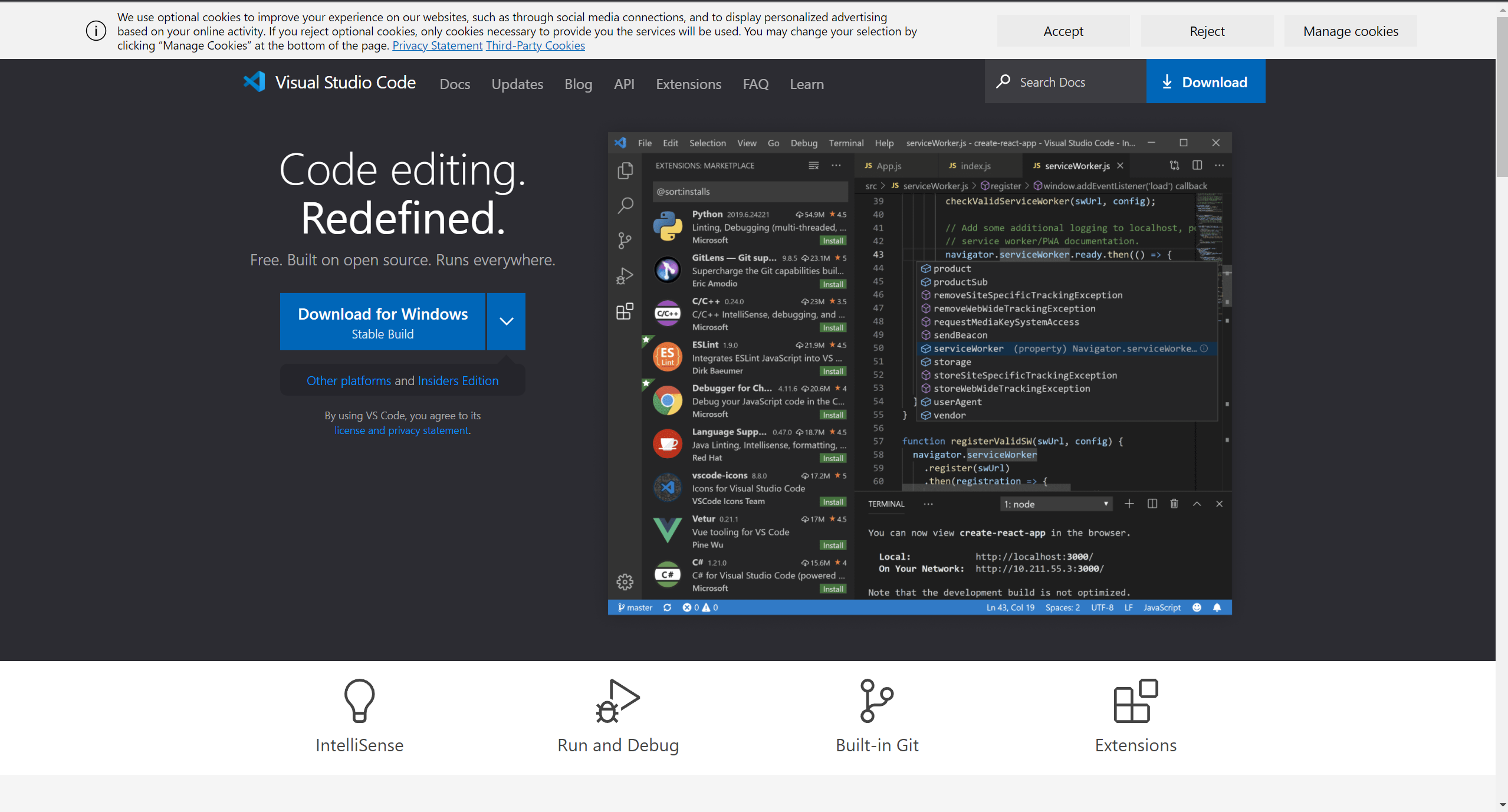 5、再次打开VS Code后,右下角会提示需要安装一些插件,建议科学上网便可以成功安装,否则会一直被墙