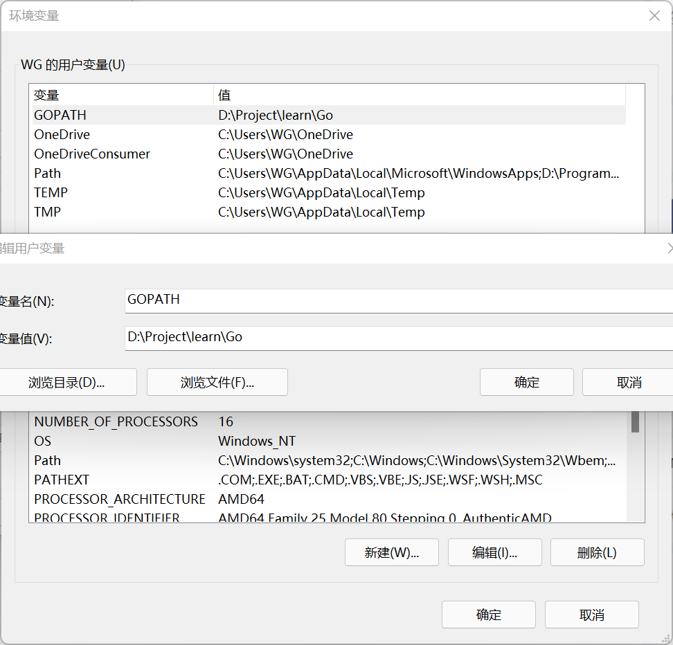 3、安装好后将环境变量的GOPATH变量设置为一个空文件夹