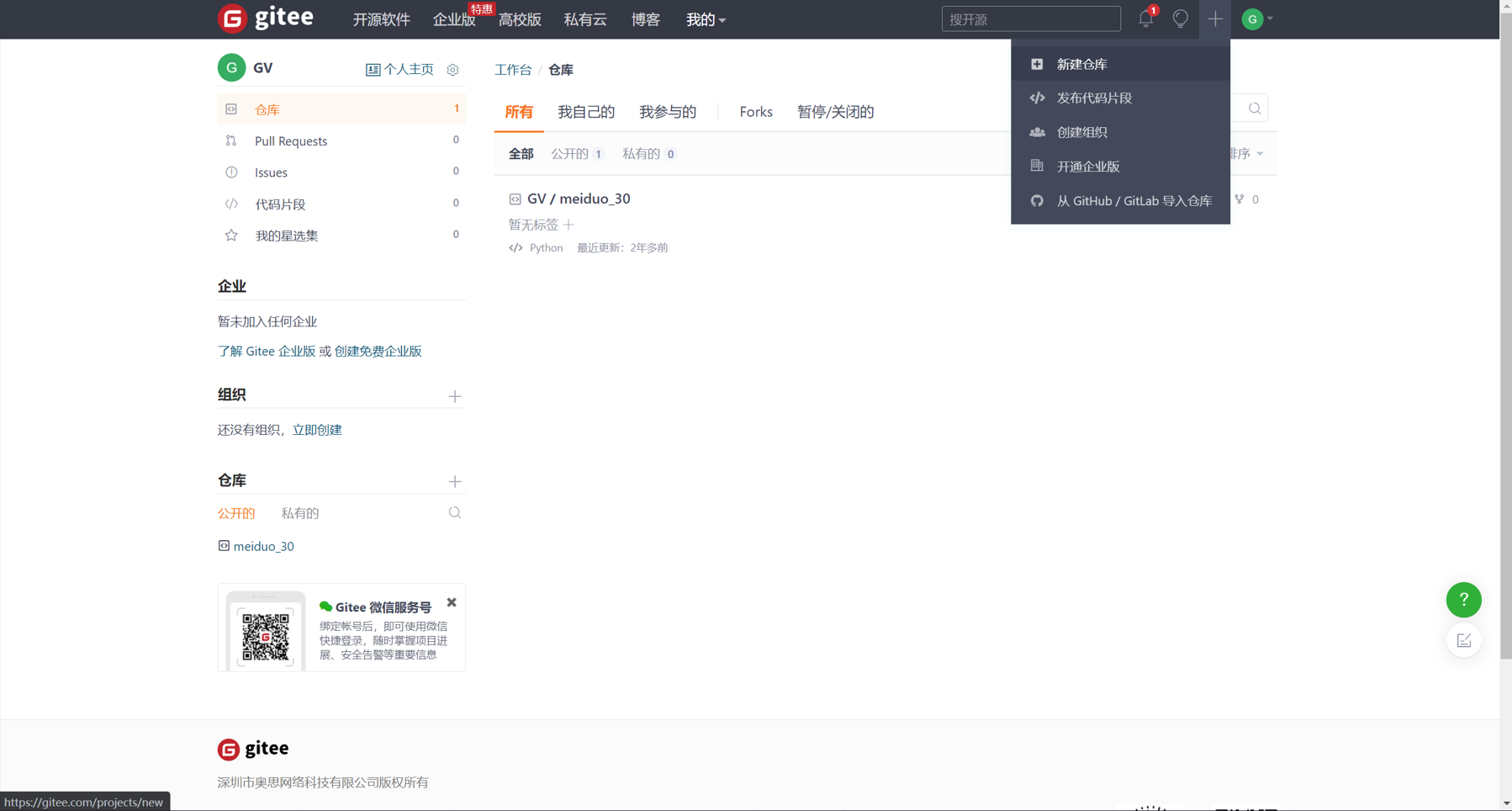 三、在gitee上创建一个库并使用命令git clone到本地目录