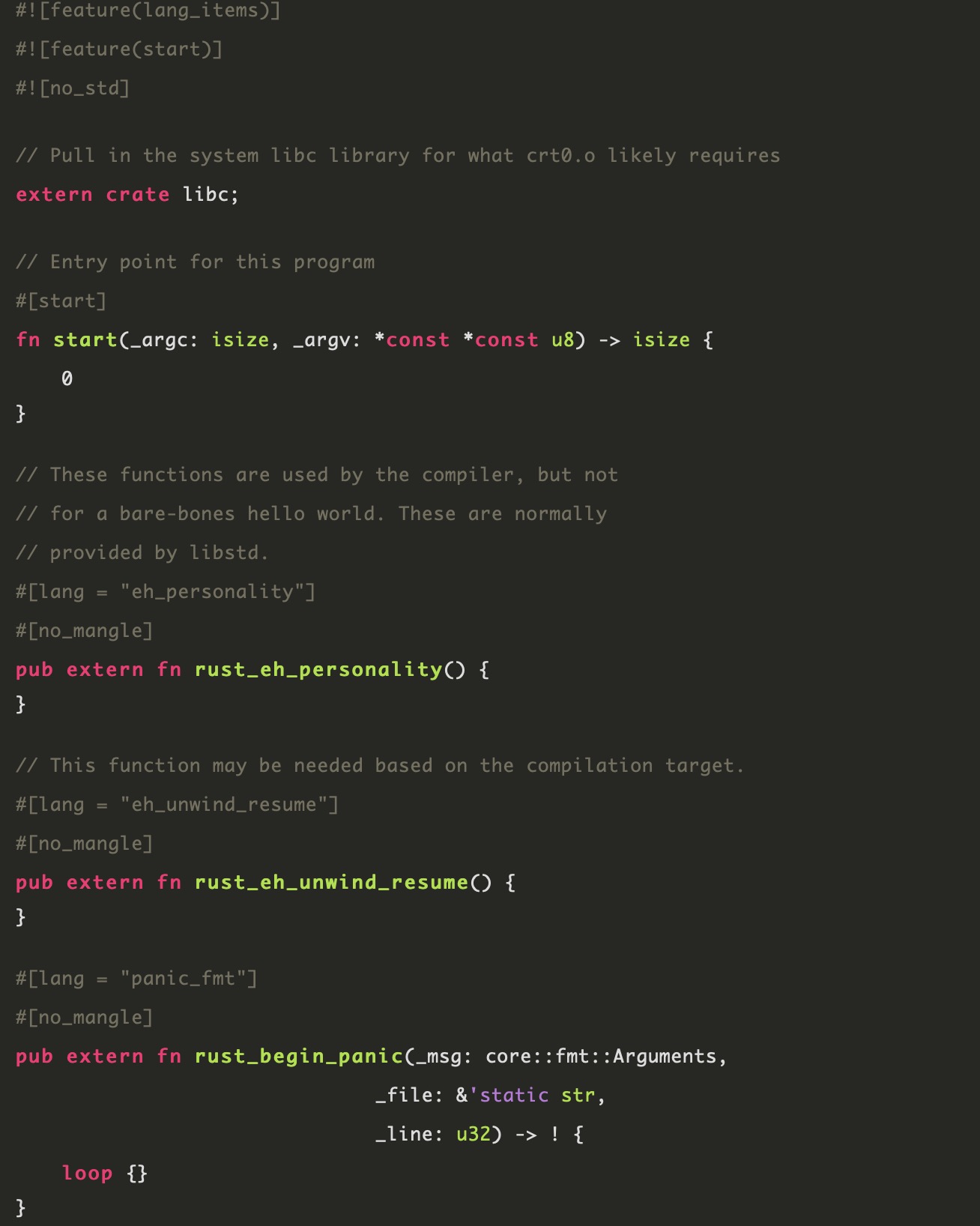 【举例,请看图】其中#![no_std]宏代码就表示本代码编译时不使用rust标准库。