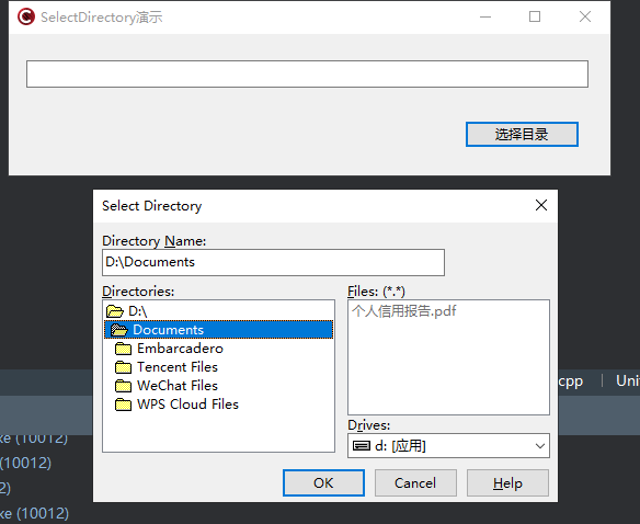 SelectDirectory是CB的东西,不是windows的,你的CB是英文版,它应该就是英文界面。至于显示中文字,你让CB去哪里弄中文字?