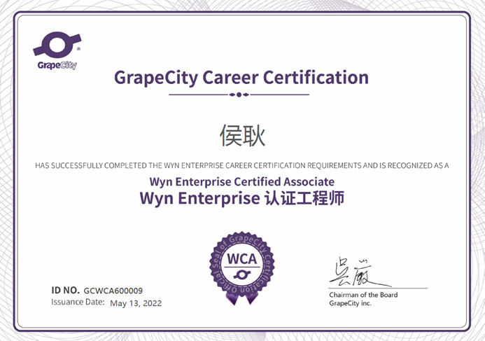 深入学习后,我有这个自信对Wyn的掌握很熟悉,因此也参加了 Wyn的中级认证,并顺利通过。