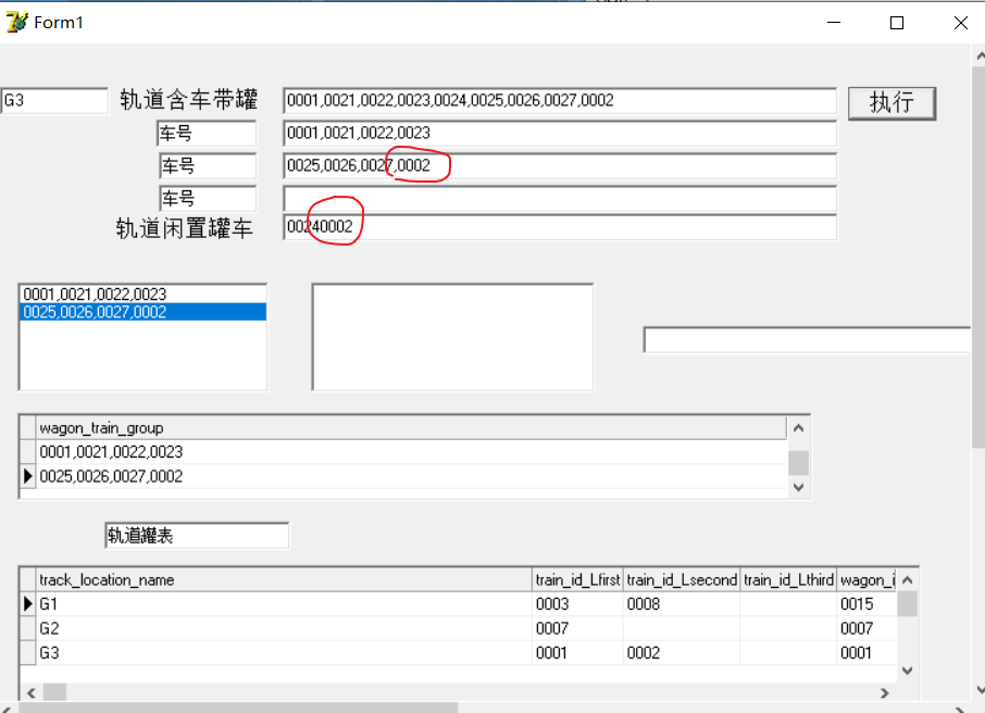 //默认最多3台车同时在同一个轨道上,车带罐信息显示在EDIT上。