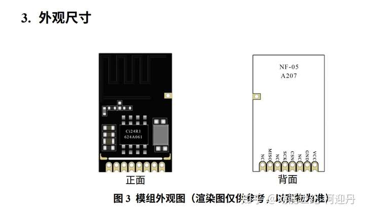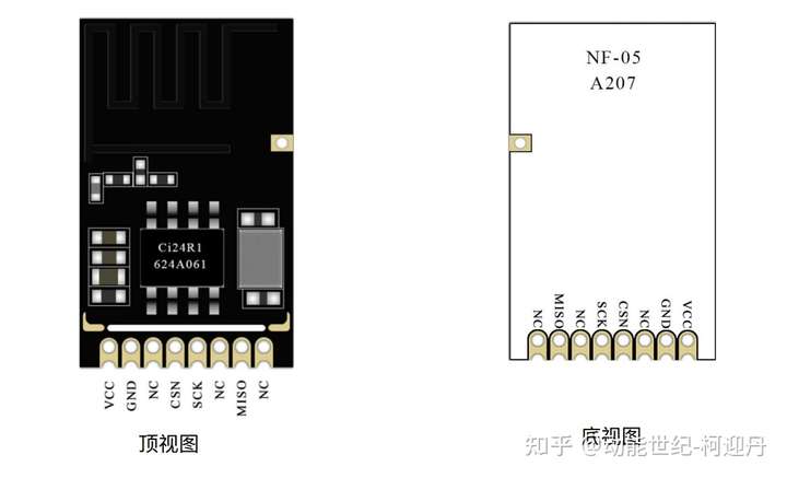 CI24R1小模块(内置天线)共接出 8 个管脚,如管脚示意图,管脚功能定义表是接口定义。