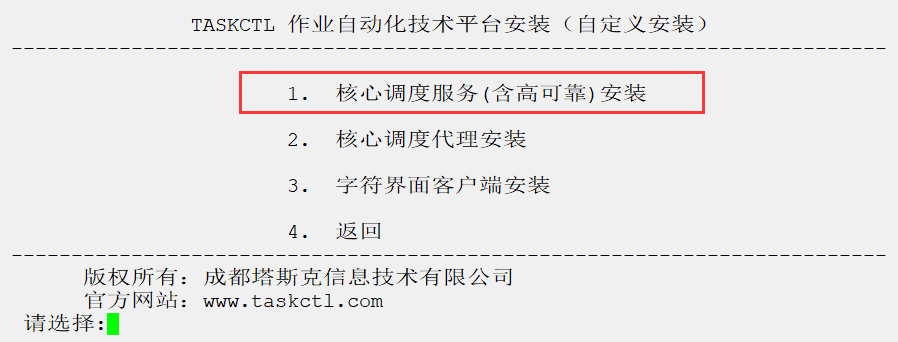 3. 选择1-核心调度服务,开始安装