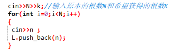 cin>>N>>k;//输入原本的根数N和希望获得的根数K