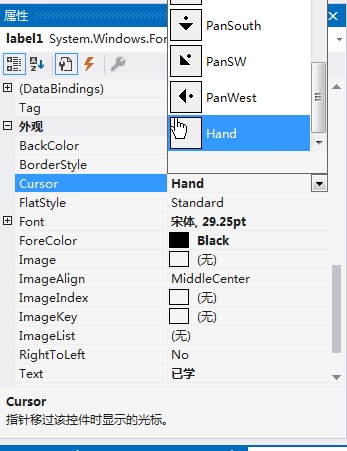 设置Cursor为Hand(手型)后,鼠标光标变成了默认的手型,可我的手型光标是修改过的(主题)
