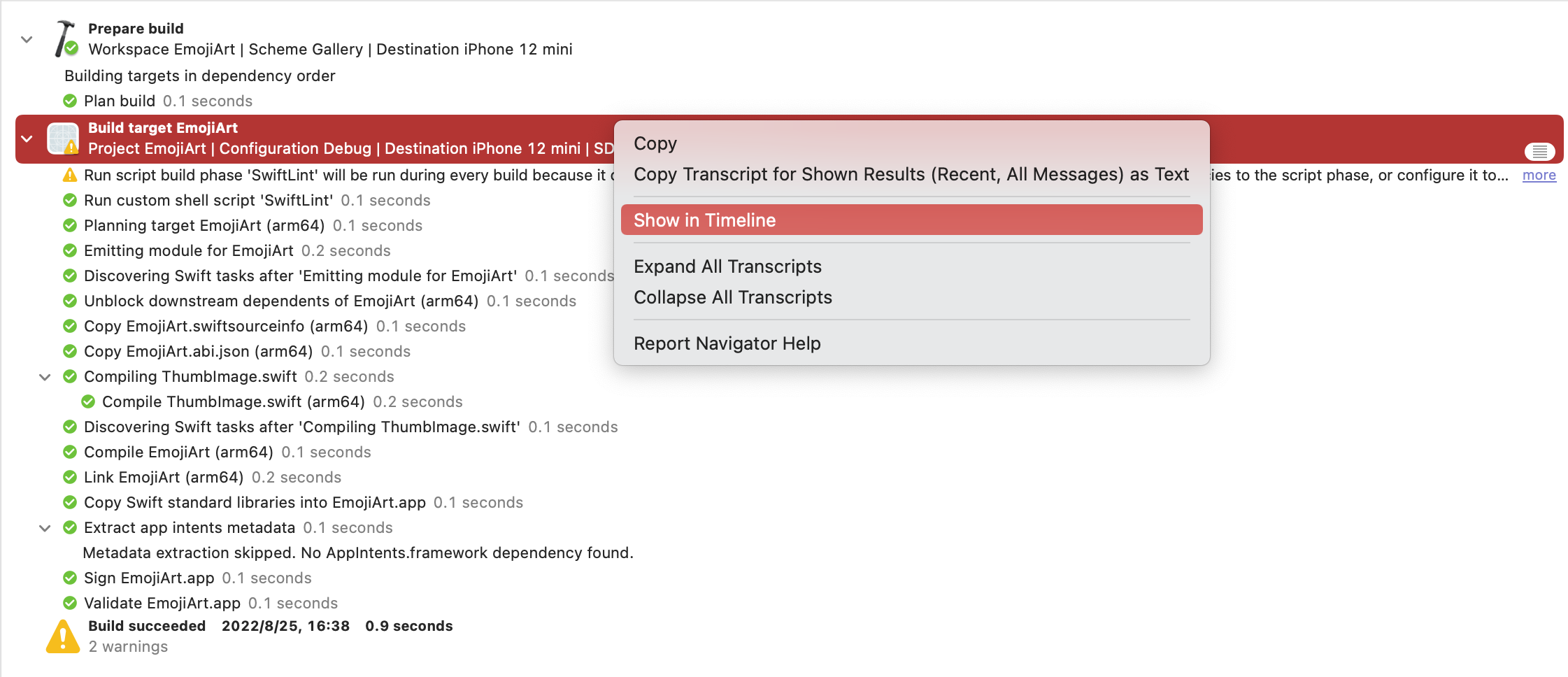 如何在Xcode 14中查看编译时间线