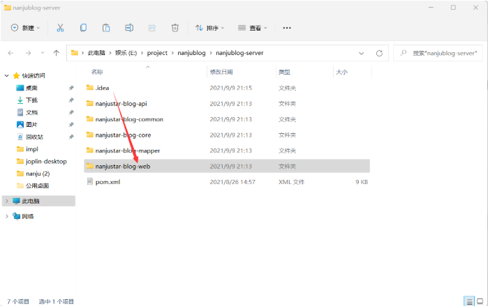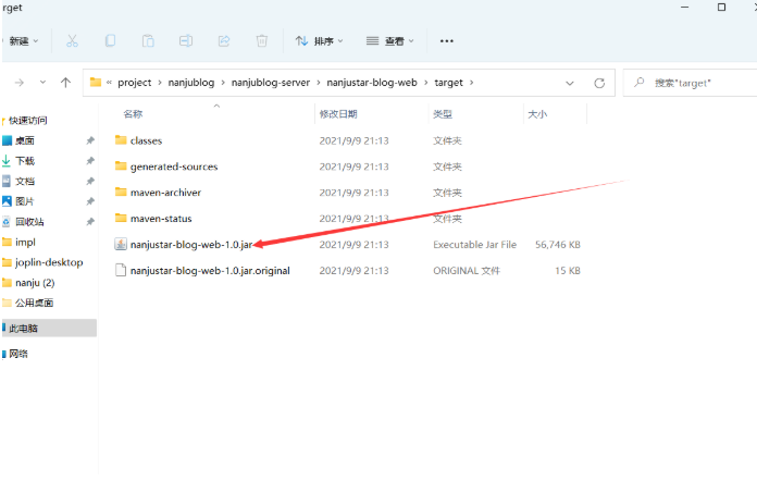 很明显我的项目是分有五个模块的,我们在对多模块进行打包时只需要拿取web模块的jar包即可。(其他模块是直接或者间接依赖于web模块,具体请自行百度)