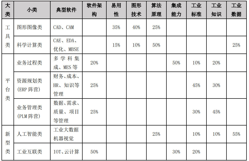 表1-1.各类工业软件的技术要素