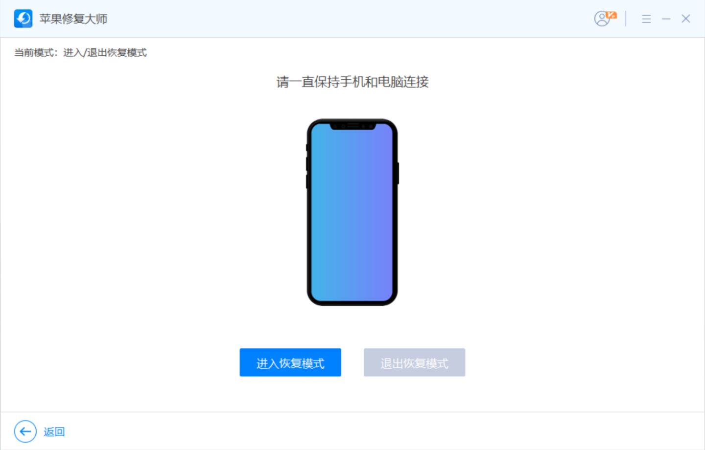 如果是自己没办法手动进入到恢复模式,也可以使用小工具【进入/推出恢复模式】功能,帮助我们自动进入恢复模式工具链接