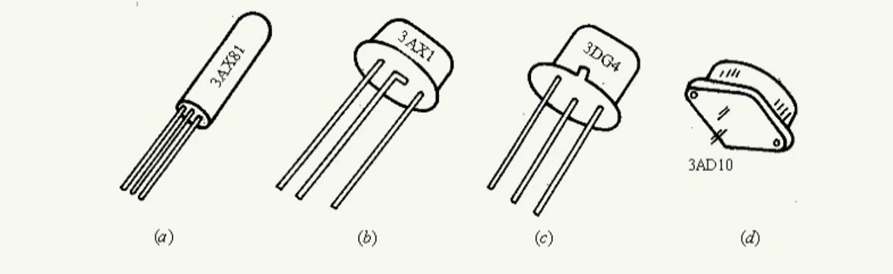 (a)、(b)为小功率管,(c)为中功率管、(d)为大功率管