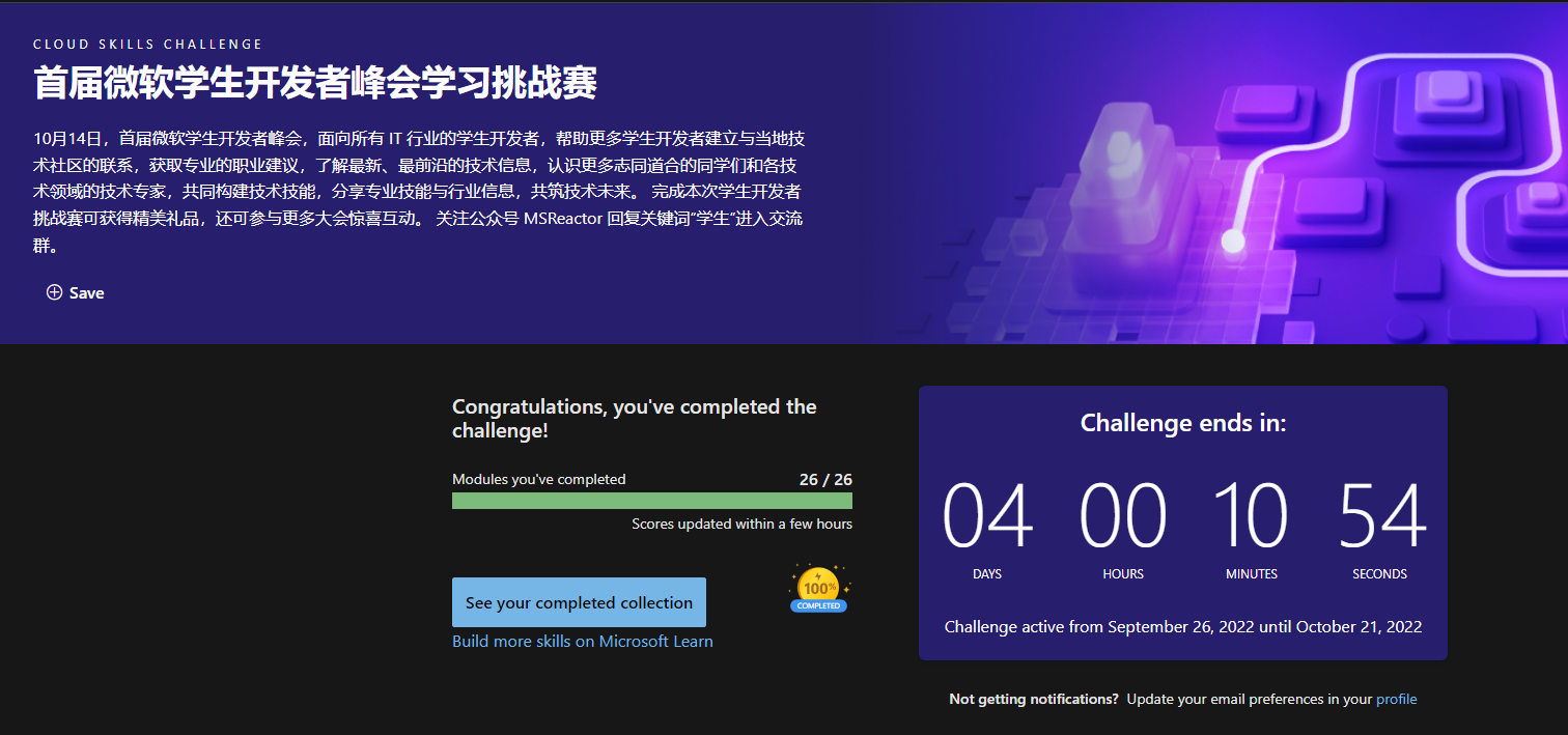 在开发者大会开始之前,我完成了微软学生开发者峰会学习挑战赛。