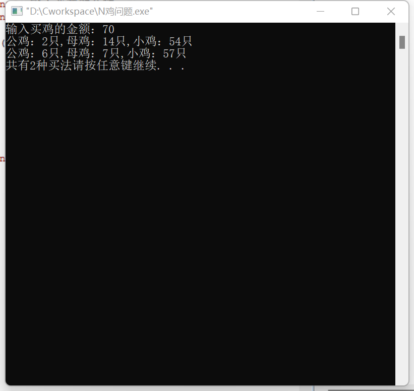 printf("输入买鸡的金额:");